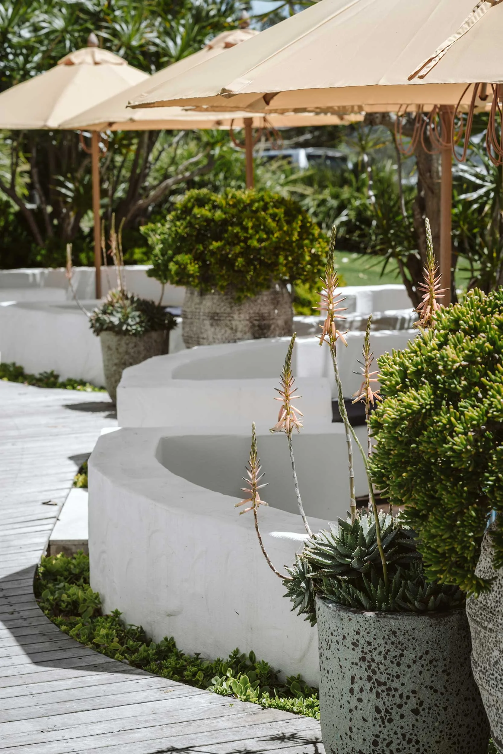 Unique curved concrete pods, with a stylish Moroccan-inspired rendered finish, offer a perfect spot for visitors to sit, relax and enjoy the scenery at Bannister Head.